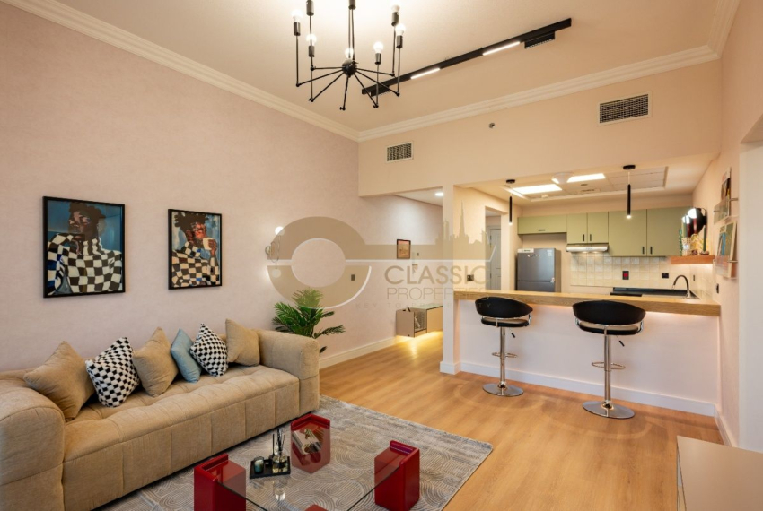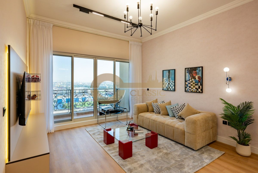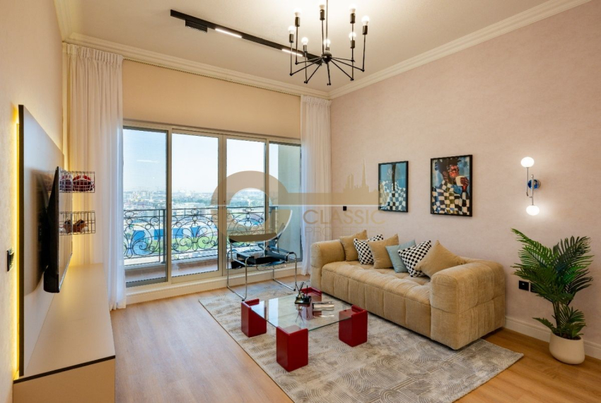 Classic Properties Real Estate is delighted to present this exceptional fully furnished and recently upgraded 1-bedroom apartment for SALE IN VENETIAN TOWER, Canal Residence West – Dubai Sports City, offering an outstanding canal and stadium view.